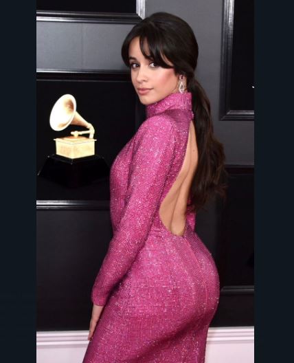 Camila Cabello optó por un diseño de cuello alto con abertura en la espalda de Armani Privé.