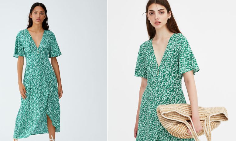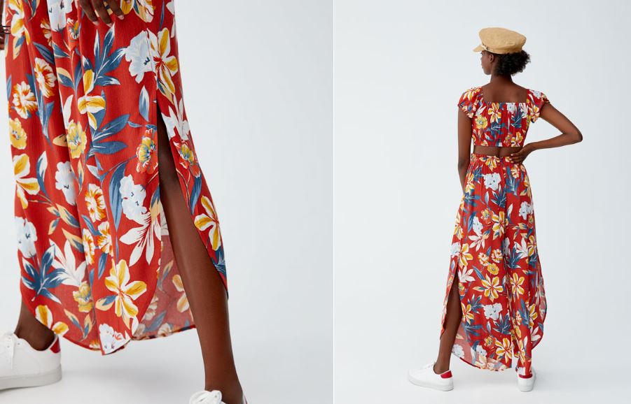 La nueva colección de Pull&Bear está plagada de vestidos de estilo midi con escotes en V, camisas de estampado vintage, faldas largas y pendientes extra grandes.