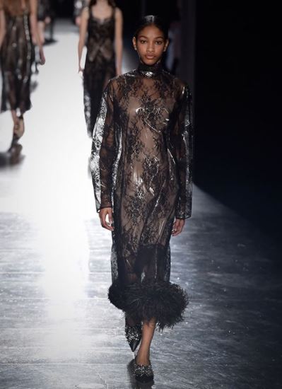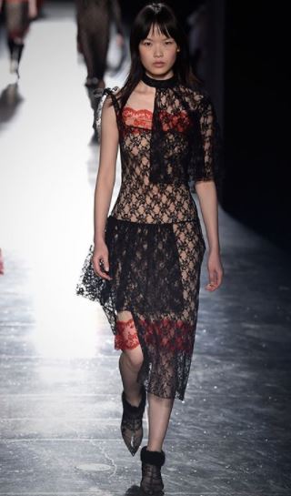 Respecto a la ropa, la propuesta de Christopher Kane para el próximo otoño pasa por el romanticismo. Para ello, hace uso del encaje en todas sus versiones posibles, tanto en vestidos, pantalones, ‘bodies’ como faldas.