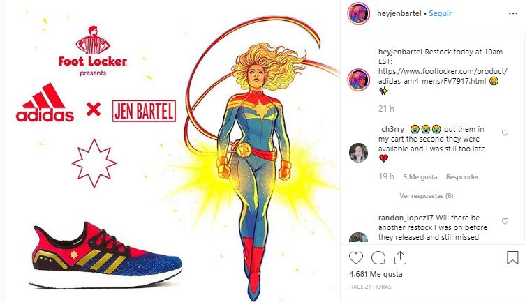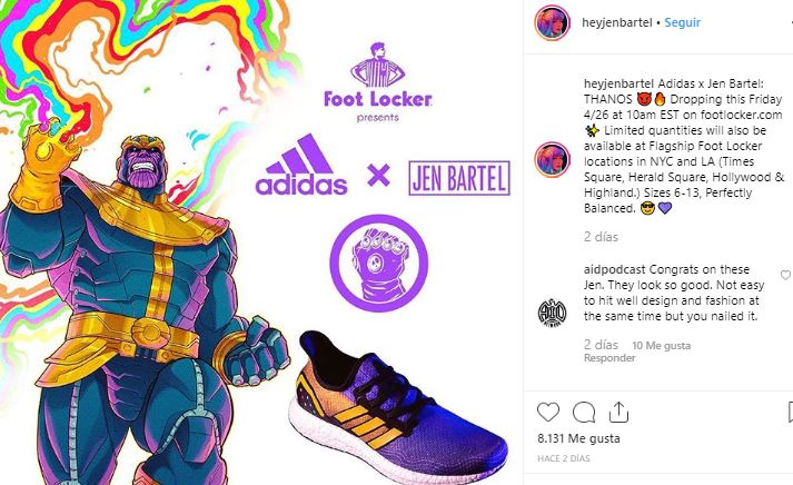 Con motivo del estreno de la nueva película Avengers: End Game, Footlocker está lanzando unos modelos de deportivas inspiradas en la ficción. Puesto que, la firma deportiva adidas se ha unido al artista Jen Bartel para personalizar algunos pares del modelo AM4 de adidas mediante el uso del Speedfactory de Three Stripes. De esta manera, el esfuerzo ha dado como fruto un par de adidas AM4 Capitán Marvel y Thanos.