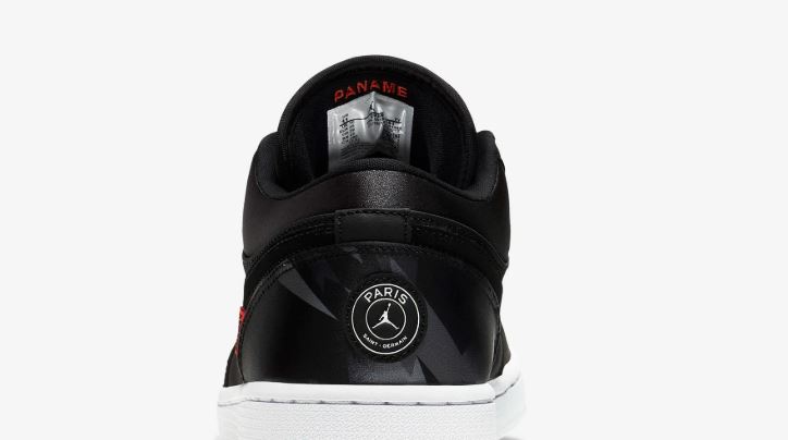 Más concretamente, el talón incluye un patrón gráfico inspirado en una camiseta y un logotipo PSG. Además, la palabra “PANAME” (sinónimo de “PARÍS”) en rojo refleja el icónico logotipo infrarrojo de la franquicia Jordan y la inscripción “ICI C’EST PARIS” (ESTO ES PARÍS) colocada en la plantilla muestra el lema y el grito del club.